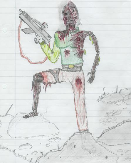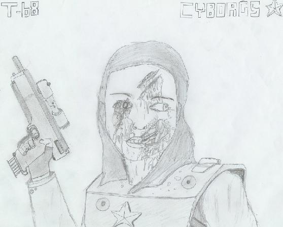 This is a bit of a fuck up, it started off as human but the head came out WAY too big...and it was drawn in biro, thats why the "terminator" has a stupid looking lump on his head that looks like half a cheap mask.