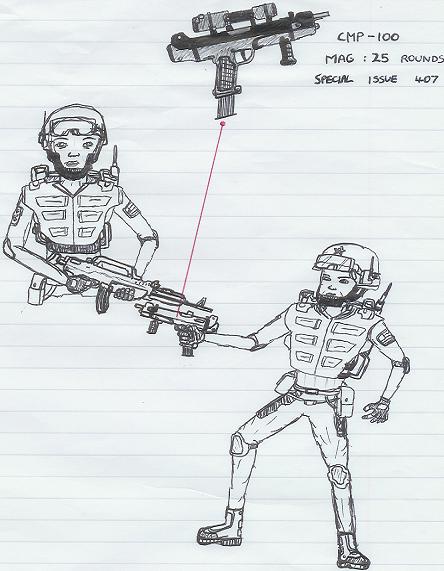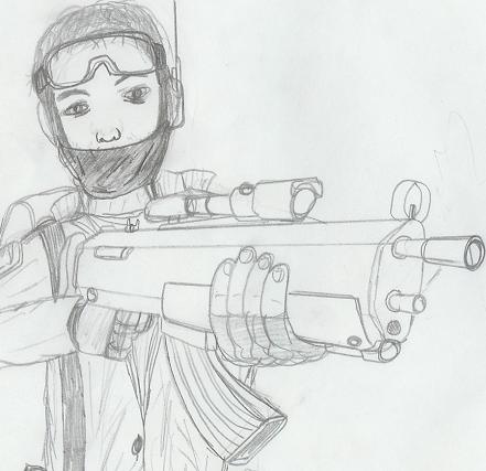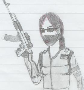 A doodle stuck with the name "Female Sniper". Very original, yes, I know